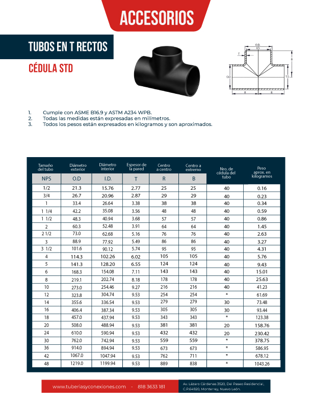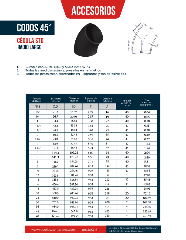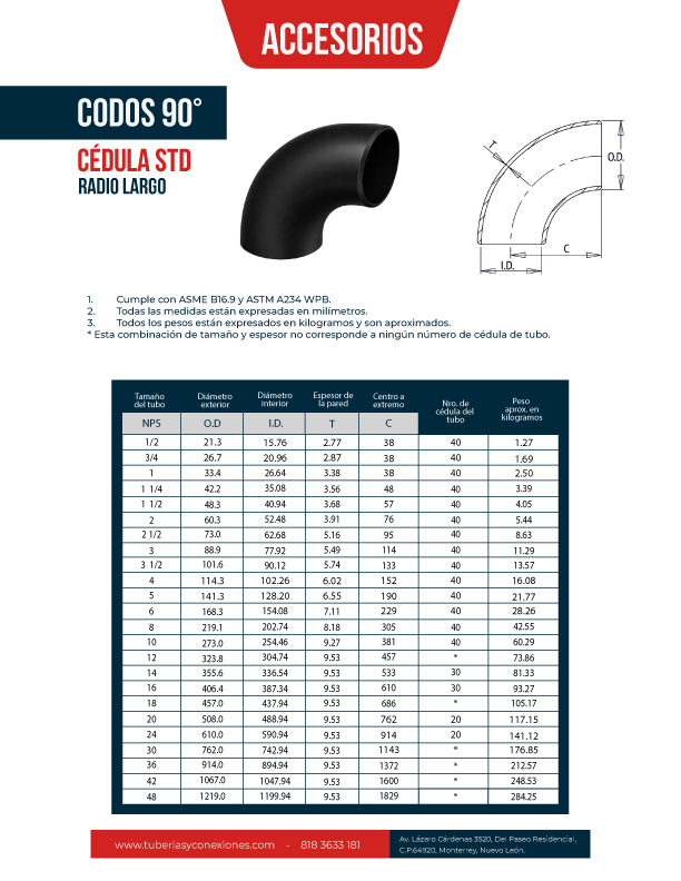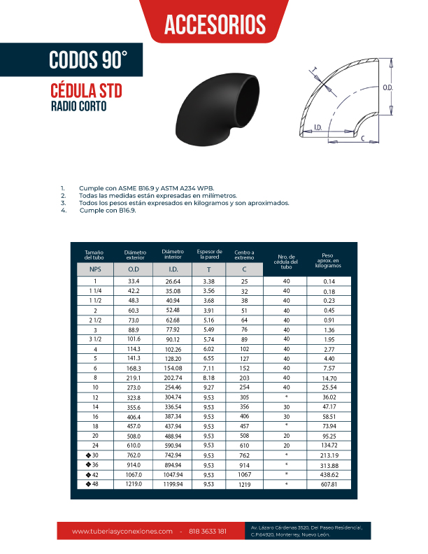 - Cumple con ASME B16.9 y ASTM A234 WPB.