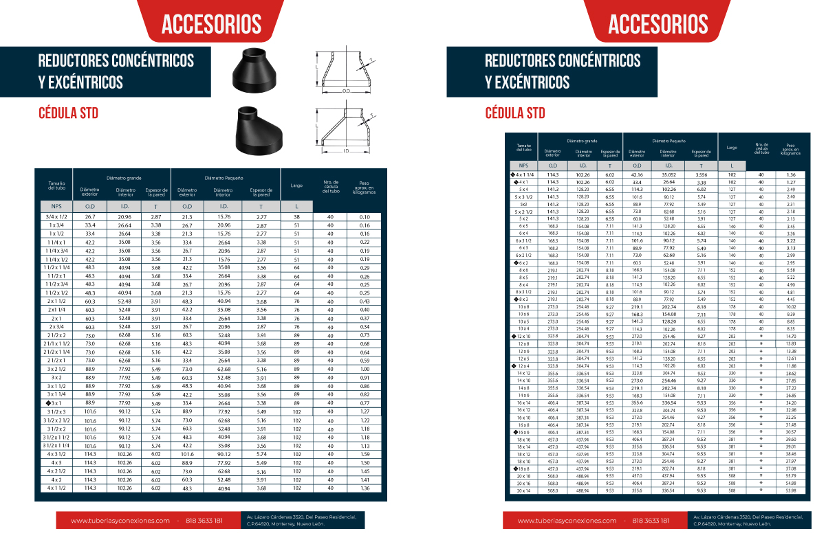 - Todos los pesos están expresados en kilogramos y son aproximados. * Esta combinación de tamaño y espesor no corresponde a ningún número de cédula de tubo.